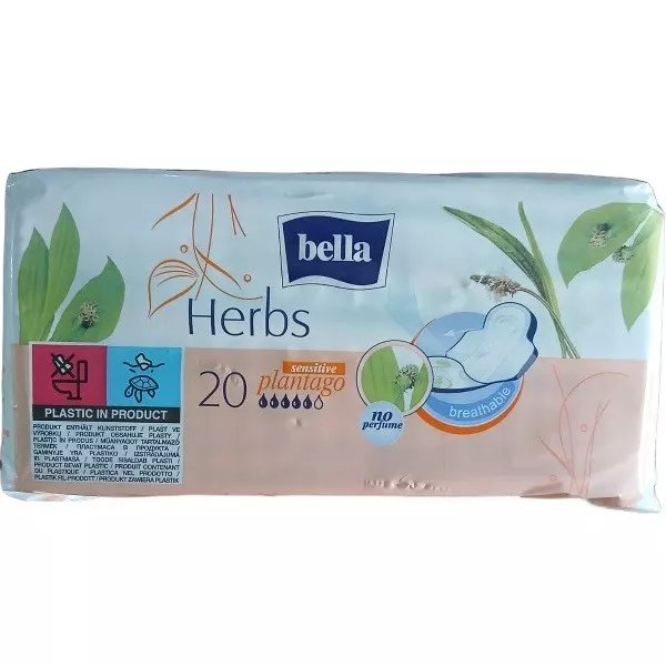 BELLA HERBS SENSITIVE PLANTAGO SERVIETTES HYGIÉNIQUES ABSORBANTES 20U