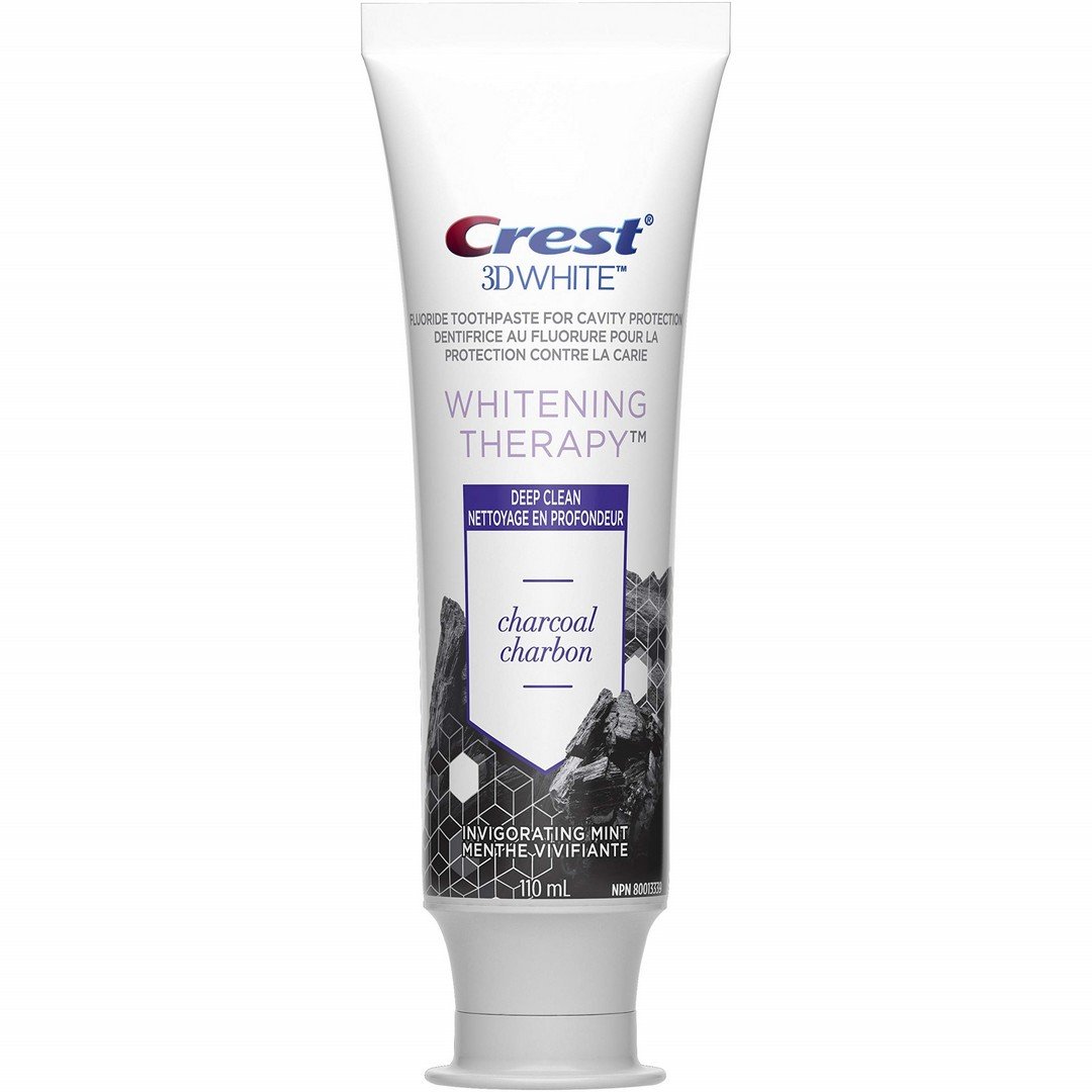 Crest 3D Blanc Dentifrice thérapie blanchissante avec charbon blanchit les dents en douceur et renforce l’émail, tout en rafraichissant l’haleine grâce à sa saveur de menthe. Magasiner maintenant !