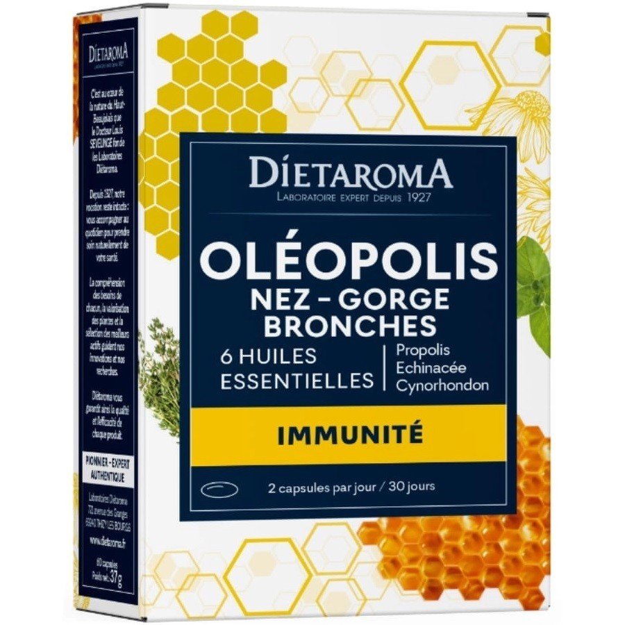 Le complément alimentaire Dietaroma Oléopolis Système Immunitaire associe des huiles essentielles, de la propolis, de l’échinacée et de la vitamine C pour soutenir efficacement vos défenses naturelles, surtout lors des changements de saison.